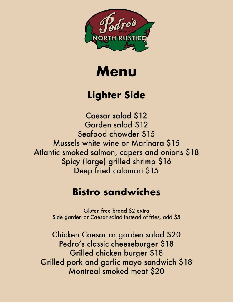 Pedro's Menu